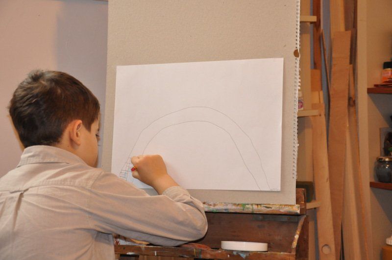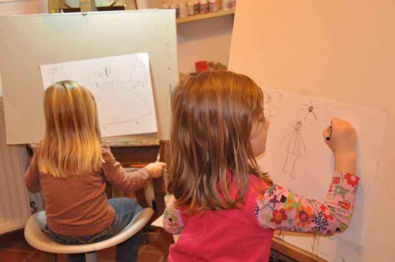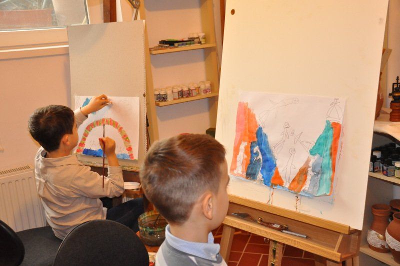 Copiii învață tehnicile de desen și pictură (noțiuni de bază, schițe, acuarelă, tempera, acrilic, modelaj, colaje și multe altele).